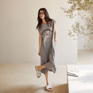 モーダルナイトガウン女性の夏薄い胸パッドベストドレス韓国スタイル大きいサイズカジュアルミッドレングスホーム服
