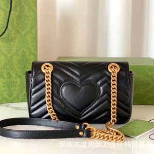 2025 ダブル G ホームスモールマモンバッグ本革ハート型波状チェーンショルダークロスボディバッグレトロブラックゴールドレディースバッグ