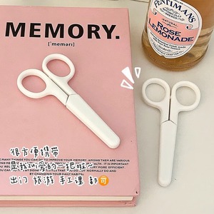 無印風 クリーム シンプルはさみ 蓋付き オフィス 学生 子供用 安全手作りはさみ 小型はさみ