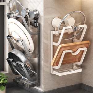 キッチン吸盤鍋蓋ラック家庭用パンチフリー壁掛けまな板収納機能付き多層収納ラック