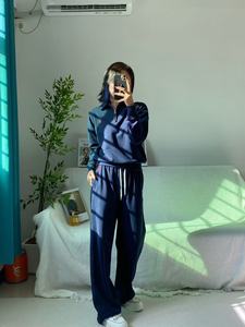 女性用秋スーツ、小さな刺繍入りハーフジップラペルスウェットシャツ、ウエストゴムストレートパンツ、カジュアルパンツ、ゆったり、スリムでトレンディ