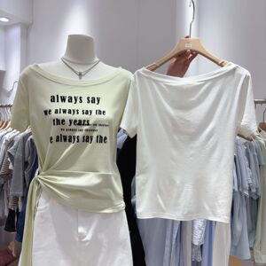 夏の新しい韓国スタイルカジュアルレタープリントツイスト不規則な大きなラウンドネックルーズ半袖モーダルコットンTシャツ