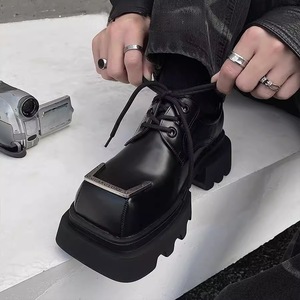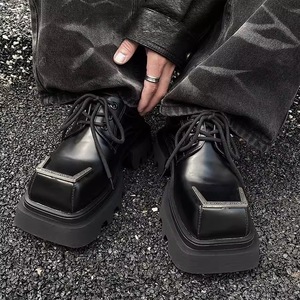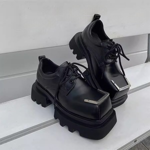 オリジナルダークヘビーメタルスクエアトゥレザーシューズ女性用 2025 新しいニッチデザインプラットフォームソールラージヘッドダービーシューズ