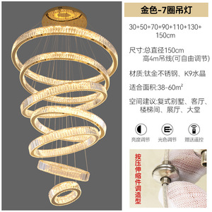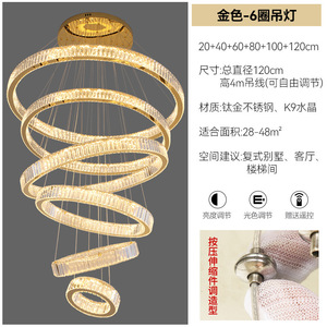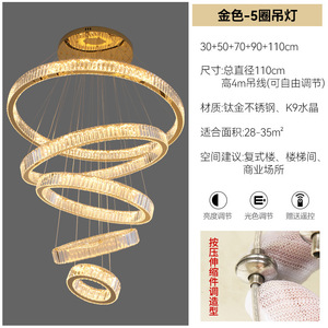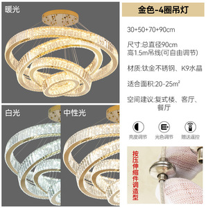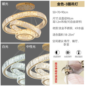 軽奢風クリスタルシャンデリア リビングルーム 寝室 ダイニングルーム 高級リングライト 卸売 中山led別荘中庭メインライト