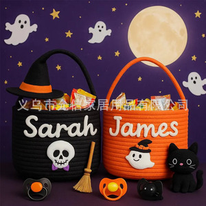 Esty のベストセラー DIY ハロウィン ポータブル キャンディ コットン ロープ バッグ デスクトップ多機能収納 ブルー