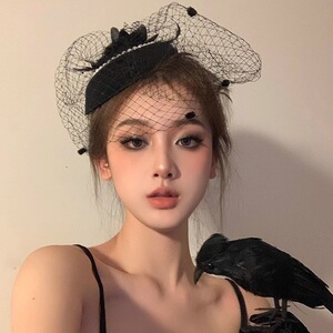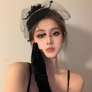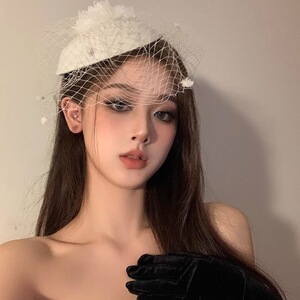 复古民国网纱礼帽女头饰新娘珍珠面纱名媛旗袍礼服发饰万圣节装饰