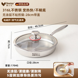 316 ステンレス鋼のコーティングされていないフライパン電磁調理器ガスストーブ特別な家庭用ノンスティックフライパンオムレツステーキフライパン