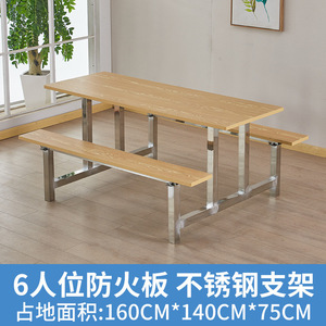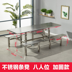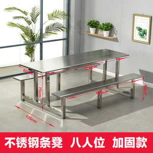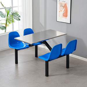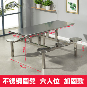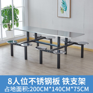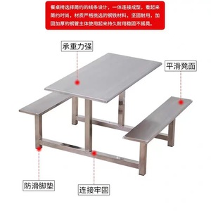 ステンレス食堂テーブル 学生・従業員用 学校食堂テーブルと椅子の組み合わせ 一体型 4人用 6人用 8人用 ファーストフードテーブル