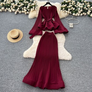 复古中长半身裙提花欧美风名媛无袖背心两件套高级针织套装女