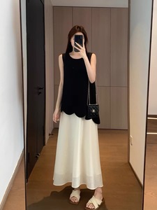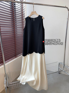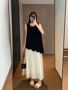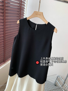THEWOW スマートで遊び心のあるテンセルアセテートリネンの軽くてエレガントなルーズバージョンのフェイクツーピースベストドレス