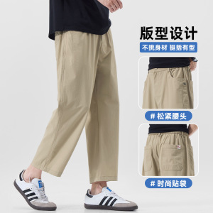 9点パンツメンズ夏薄手ルーズストレートアイスシルクカジュアルパンツ2025新作トレンドブランド速乾パンツ