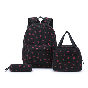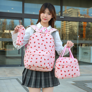 小さな新鮮な文学中学生スクールバッグインイチゴ女子学生バックパックかわいい漫画スリーピーススクールバッグ