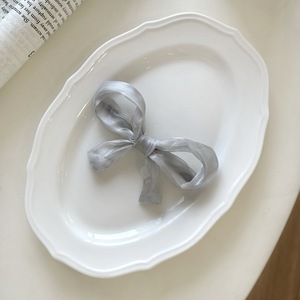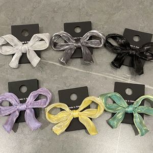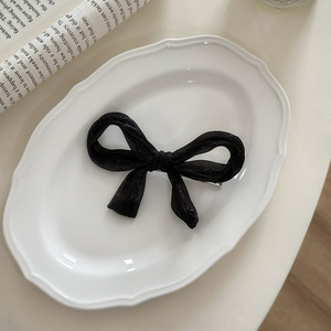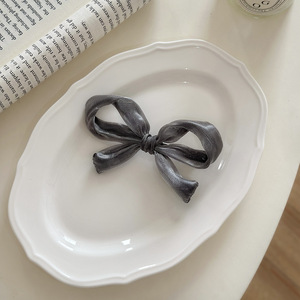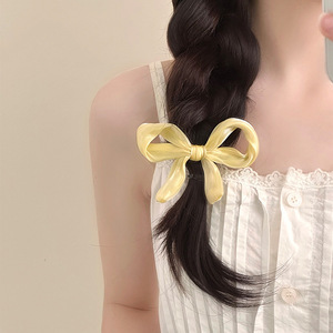 韓国の高級感の超仙光沢感の糸の黄色の蝶結びの前髪クリップの女性の後頭部の半分の髪飾り