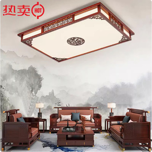 新しい中国風のシーリングランプ長方形 LED ランプ無垢材中国風模造古典的なリビングルームの寝室のランプ中山メーカー