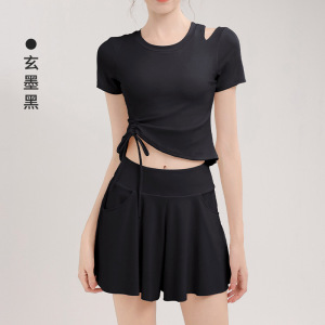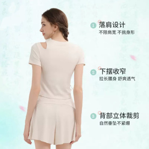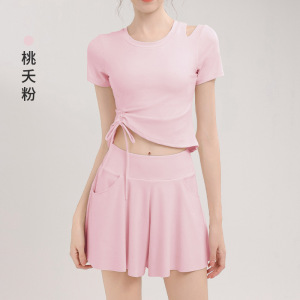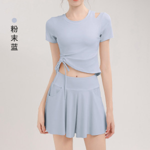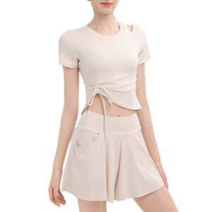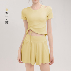 イゼル サマースポーツ半袖 胸パッド付き 巾着 ウエストシェイプ 痩身 肌に優しい 快適 速乾 通気性 フィットネス ヨガ