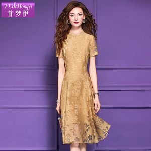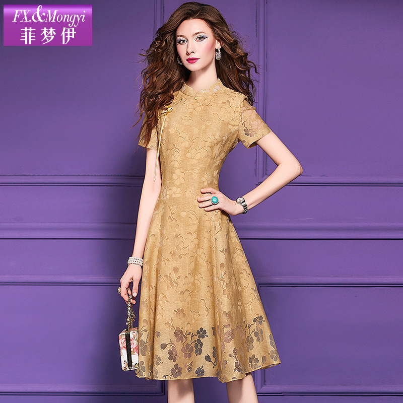 Feimengyi 中空刺繍新中国風ドレス女性の半袖夏ハイエンド国民風スリム改良されたチャイナドレス