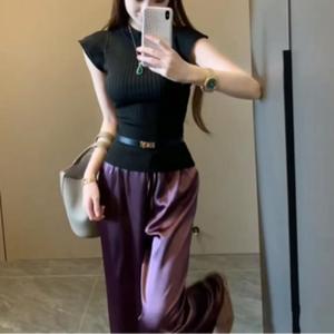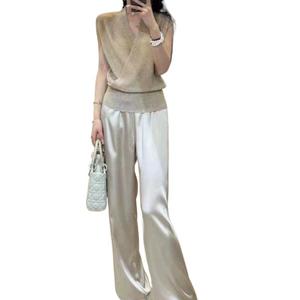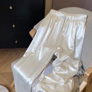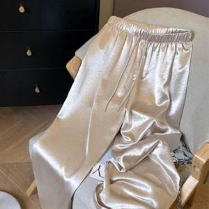 夏にスリムで万能なアセテートサテン伸縮性ハイウエストカジュアルパンツレギュラーシャンパンレギュラーブラックなし