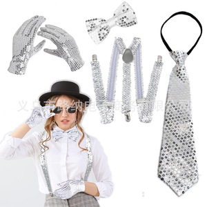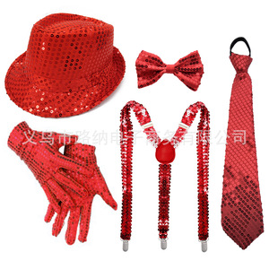 1970年代DISCOパーティー スパンコール帽子 手袋 リボンネクタイ ショルダーストラップ 欧米クロスボーダー パフォーマンススポット