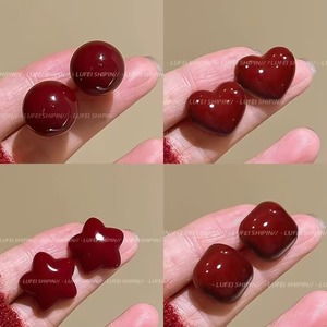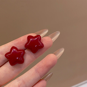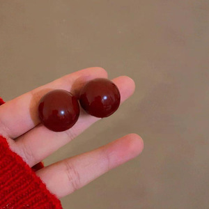 复古港风酒红色画油耳钉气质甜美高级感耳环简约时尚轻奢百搭耳饰