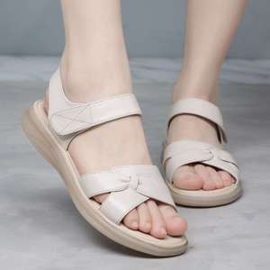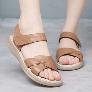 牛筋底マザーズシューズサンダル女性用お出かけフラット夏新作快適軽量中高年レザーサンダル。