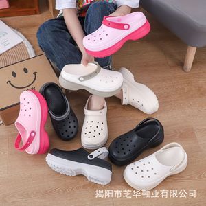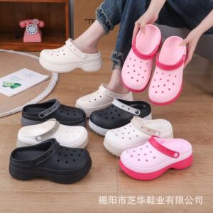 2025年新款双色糖果色时尚外穿防滑拖鞋女款休闲百搭厚底洞洞鞋