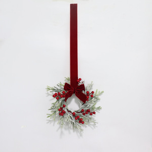 フロストホワイトアントラー、松葉、赤い実の房、赤いベルベットのリボン、吊り下げリング CW250528