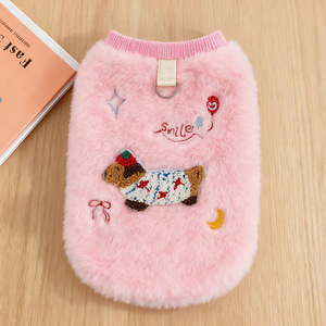 ペット猫服秋と冬の豪華な暖かいベストゴールデングラデーションラグドール刺繍ダックスフント牽引トップ