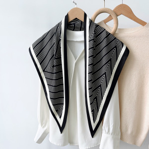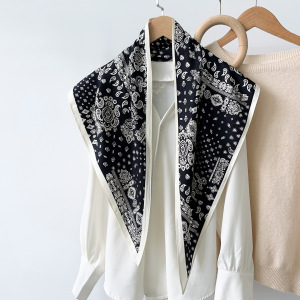 夏の雰囲気の着用ターバンツイルシルク模造シルククール斜めターバンカシューナッツプリント三角形シルクスカーフ女性用