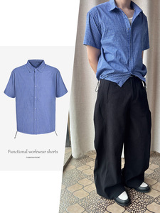 【CSMY】Xanvas「ロイヤルブルー」ロイヤルブルーチェック柄巾着半袖シャツ ミュウサマー