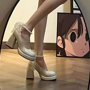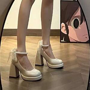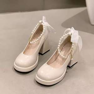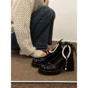 女性のためのハイヒールの小さな革靴 2025 秋と冬の新しい白いフレンチウェディングシューズレトロな厚いヒールの厚い底のマリージェーンシューズ