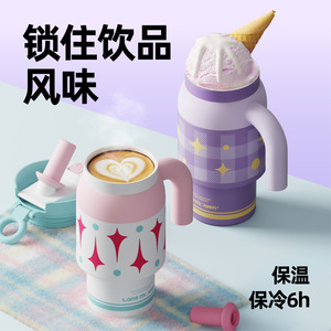 Lane Mouen 保冷カップ セラミック 高見えガール 大容量 車用ストローカップ アイスバーカップ