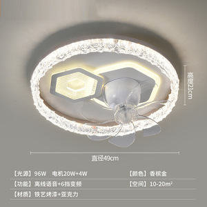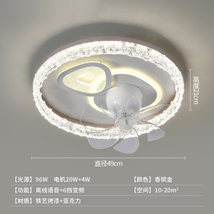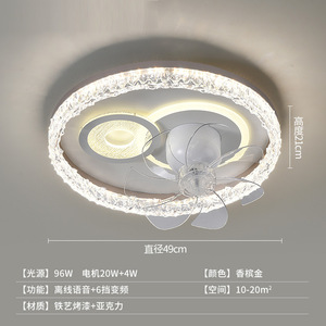 シーリングランプ、振動ファンランプ、モダンなマスターベッドルーム、スタディルームライト、高級感のあるルームランプ、クリスタルホームシーリングファンランプ