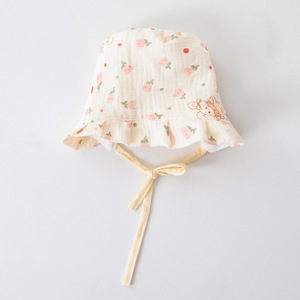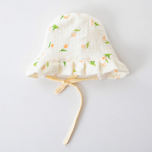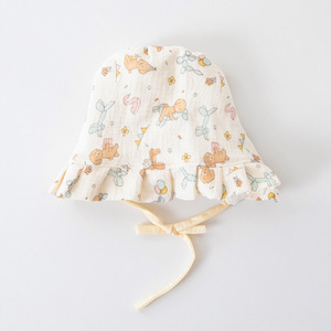 クレープサンハット夏薄い0-6ヶ月ベビー帽子卸売ソフト通気性かわいいベビーストラップ帽子