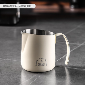 Bincoo コーヒーラテアートシリンダー 大型斜め口ラテアートカップ ステンレス製ミルクシリンダー 丸口 初心者ラテアート学習