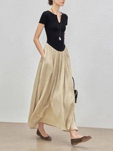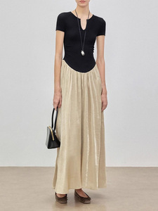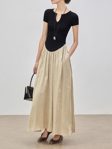 優美な曲線のウエストライン分割、軽量ペーパーマン、スリムな細いUネック、ステッチ接ぎドレス