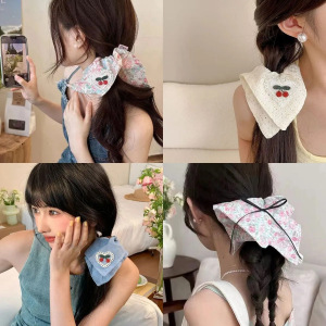 花柄デイリー万能スクエアスカーフヘアバンド夏甘い女の子ローポニーテールヘアロープヘッドバンドハイエンドヘアアクセサリー