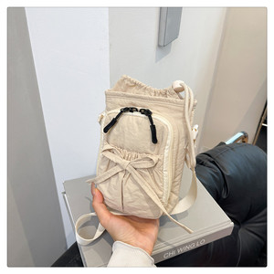 クロスボーダー韓国版クロスボディバッグ女性用 2025 新しい多用途シンプルなリボン小さな正方形バッグカジュアル外出携帯電話バッグ