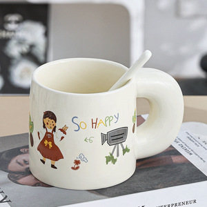 乳白色のかわいい漫画の子犬コーヒーカップオートミール朝食カップセラミックカップ高価値マグカップウォーターカップ