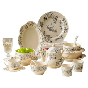 レトロな青と白のセラミックティーポットレースコーヒーカッププレートライスボウルディッシュスプーンスープボウル組み合わせ食器卸売