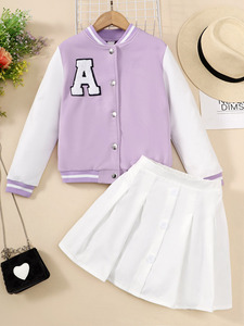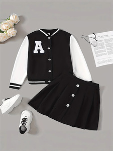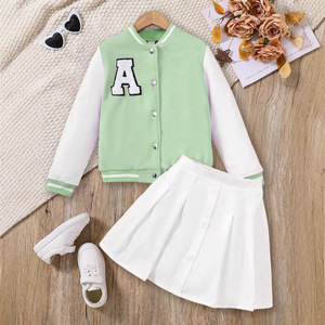 国境を越えた貿易女の子8-12歳の秋と冬の野球ユニフォーム長袖シングルブレストジャケットとプリーツスカートの2点セット