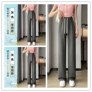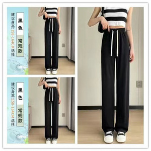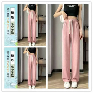 Yunduo ワイドレッグパンツ女性の夏の新しい薄い弾性ウエストドレープハイウエストストレートパンツルーズフロアレングスカジュアルパンツ