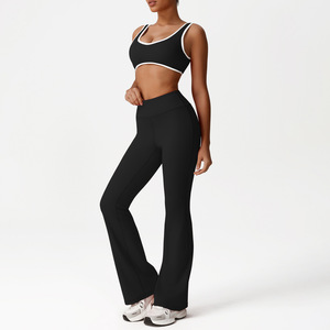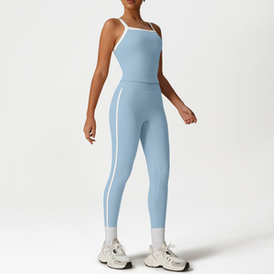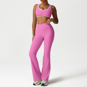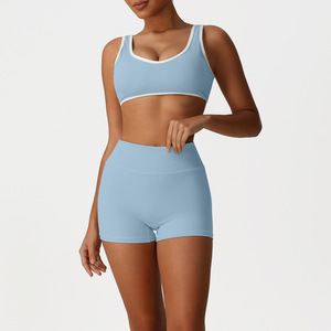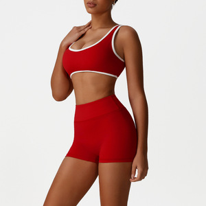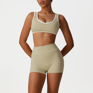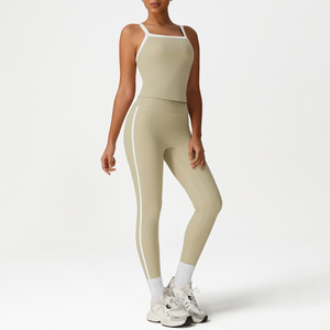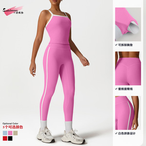 AliExpressクロスボーダースポーツヨガウェアスーツヒップリフティングとお腹引き締めスリムパンツコントラストカラー高弾性スポーツブラセット
