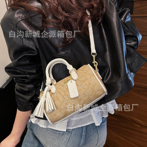 フランスのハイエンドハンドバッグ女性のための 2025 新しいプリントクロスボディシリンダーバッグレトロトレンディな多用途ショルダーバッグ女性のための