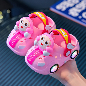 子供用スリッパ、夏の女の赤ちゃんの車、明るいライト、屋内用ソフトソール滑り止めスリッパ、男の子用エッグマン下駄