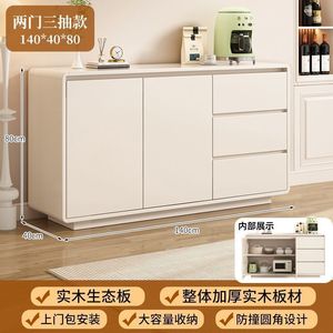 壁に一体型の全無垢材サイドボード、モダンでシンプルなクリームスタイルのリビングルームアーク収納収納ビンキャビネットサイドボード