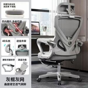【グレーフレームブラックメッシュ形状コットンスタイル】四次元ランバーサポート+ヘッドレスト+シャオヤオ+フットレスト