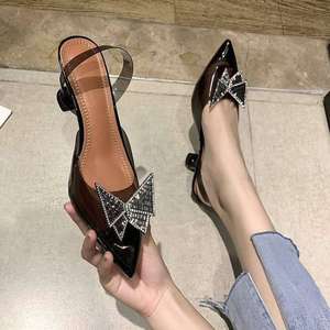 サンダル 2025 新しい女性の夏のポインテッドトゥスティレットフェアリースタイル包頭透明ラインストーン蝶の羽ハイヒール