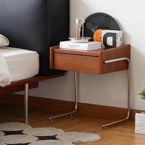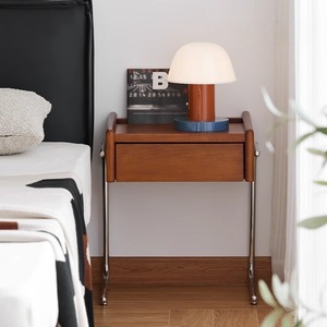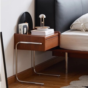 中古ベッドサイドテーブル無垢材小さな寝室サイドキャビネットシンプルな吊り下げステンレス鋼レトロリビングルームサイドテーブル和風