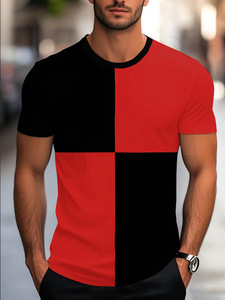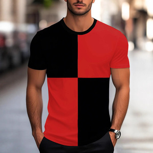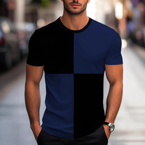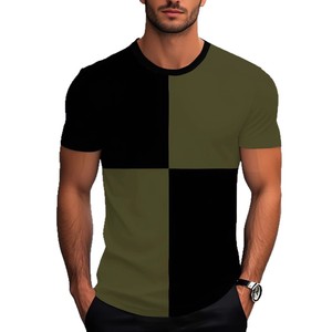 クロスボーダー 2025 ヨーロッパとアメリカの夏の新しいカジュアルスポーツ紳士服チェック柄半袖ファッションラウンドネックメンズ Tシャツトレンド