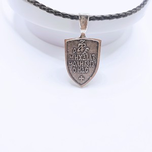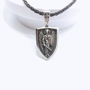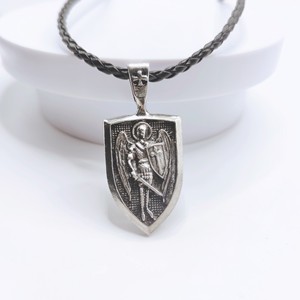 ヨーロッパとアメリカのレトロな聖マイケル天使のシールドレザーロープネックレス両面クロスレターペンダントジュエリー卸売